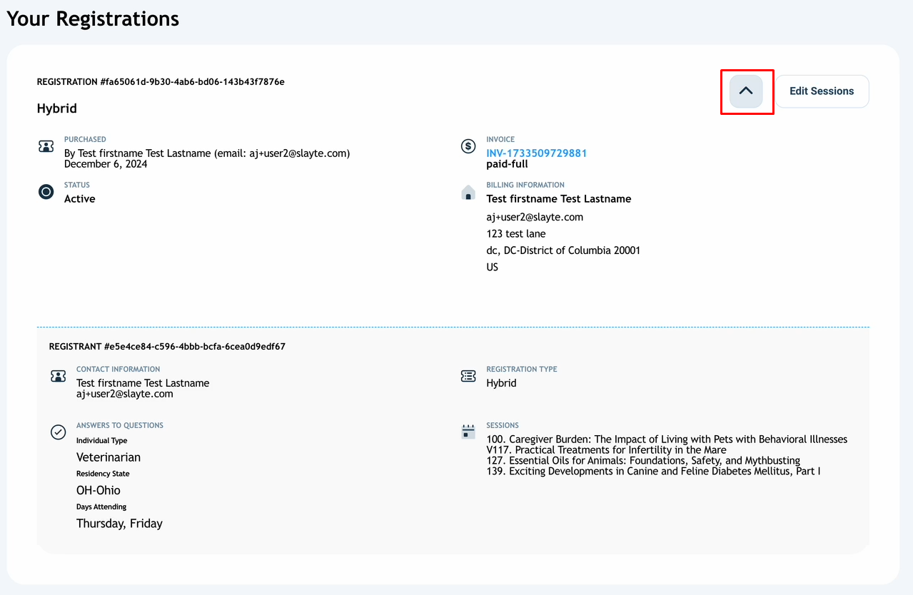 Note: You will see your current registration details, including all the sessions you are associated with.